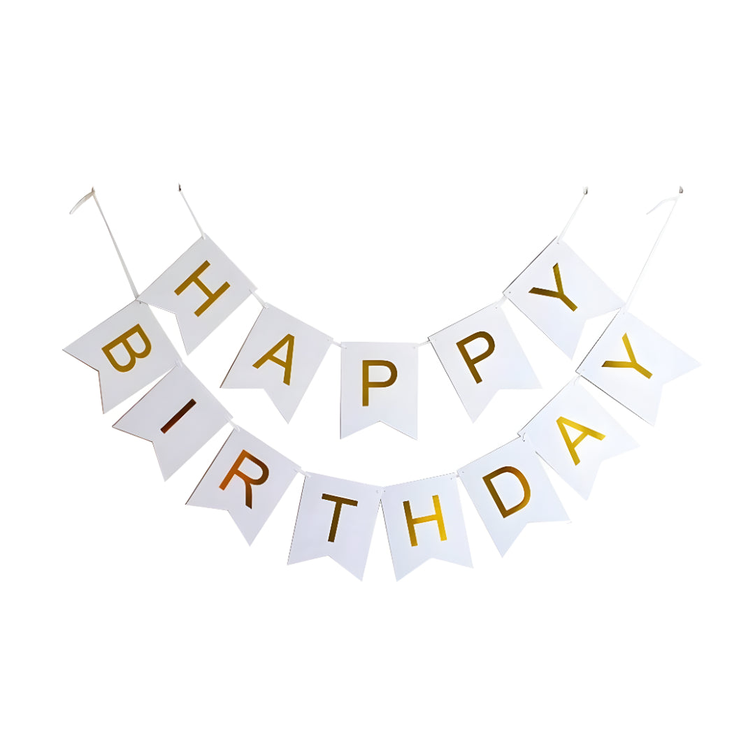 Banner de cartón blanco para cumpleaños rojo(incluye banderines + listón curly).
