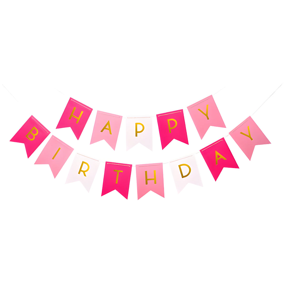 Banner de cartón multi color para cumpleaños rojo(incluye banderines + listón curly).