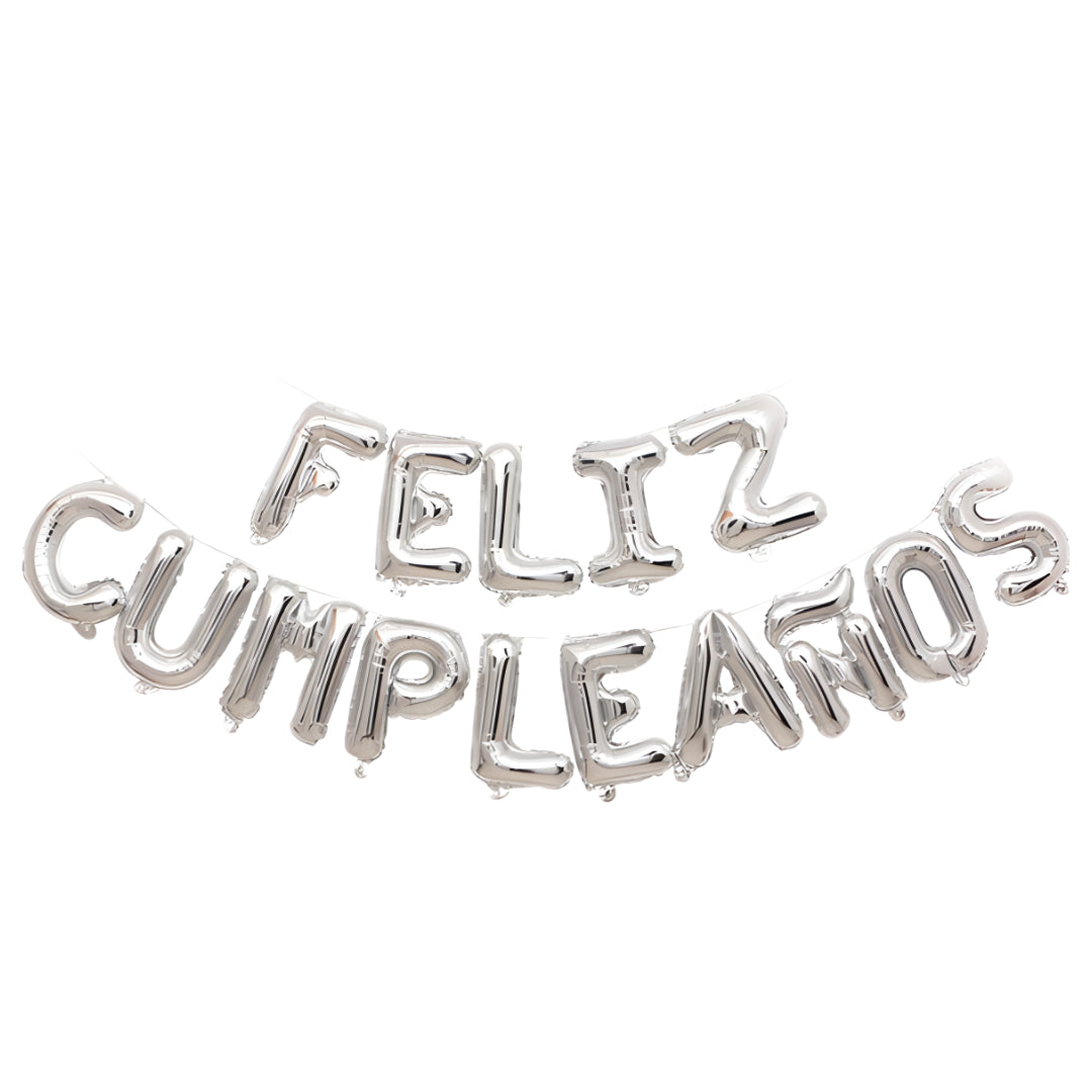 Letrero Feliz Cumpleaños plata 16 pulgadas.